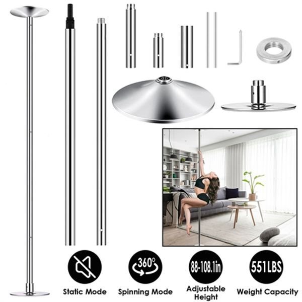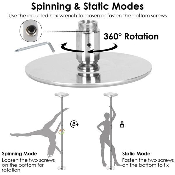 dancing pole is a good way to keep fit and improve dance skill. Thanks to its adjustable height, you can install it in your bedroom, living room or anywhere you need. Constructed of 45mm seamless steel tubes with a smooth surface, can hold up to 551lbs weight capacity, ensuring the safety of your every moving. Designed with spinning and static modes, it is suitable both for beginners to learn new tricks or for professional dancers to create elegant performance.